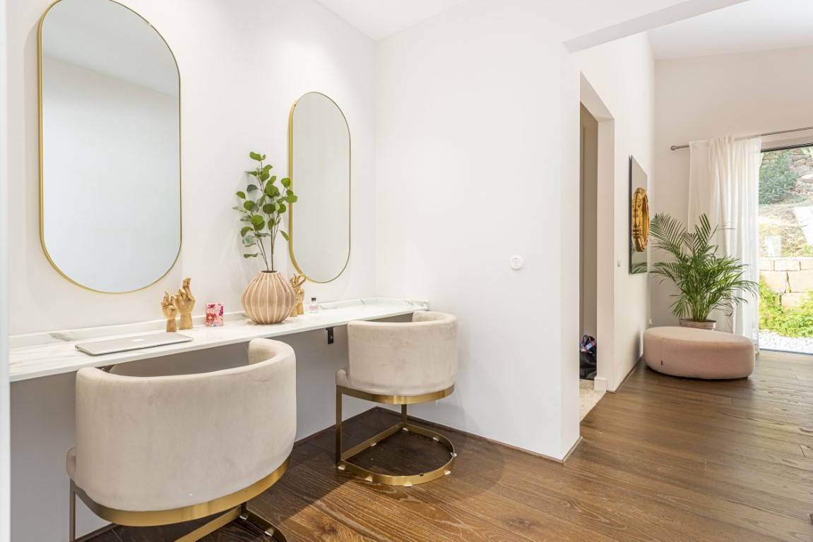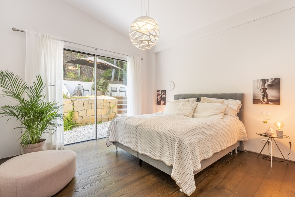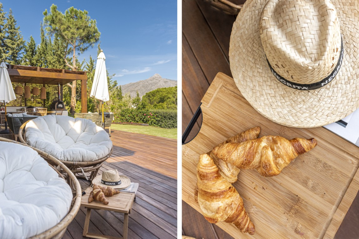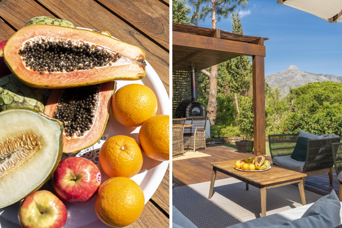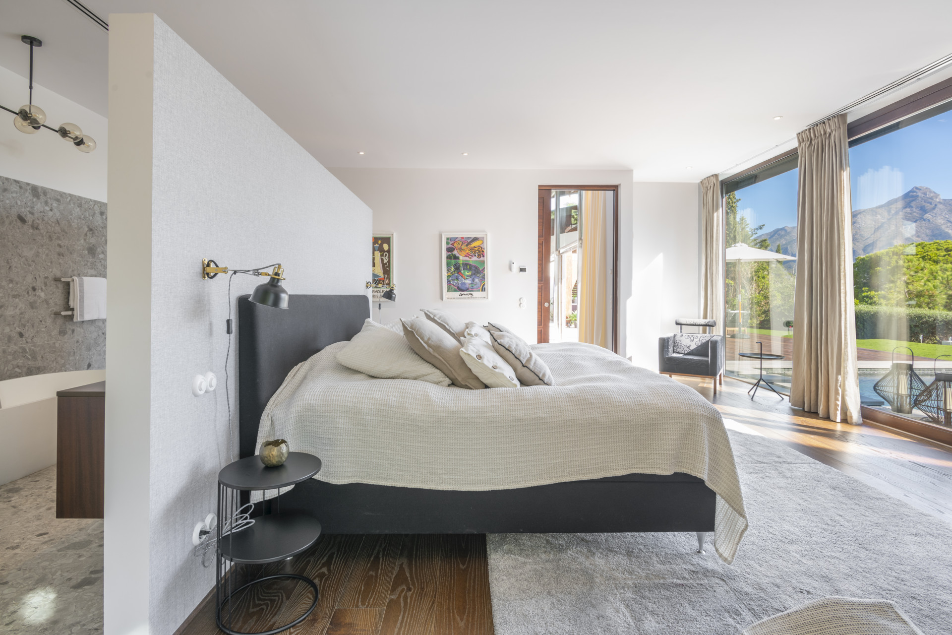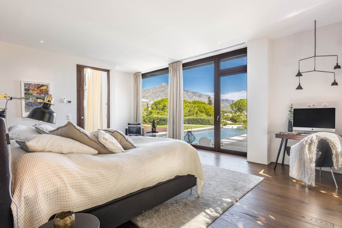 Gorgeous Bali style six bedroom, south facing, totally refurbished villa in the heart of Las Brisas, close to Los Naranjos Golf and only a short drive down to Puerto Banus, its sandy beaches, best restaurants and exclusive boutiques together with other amenities. On the lower level of this property you find a spacious gym room, entertainment/ cinema room, three guest bedrooms and an access to an enchanting patio. On the upper level there is an open plan modern kitchen leading to the living-dining area with direct access to the private terrace, garden, outdoor kitchen with a dining area and infinity swimming pool with amazing mountain views; the master suite with a walk-in closet and also with an access to the terrace and garden and two more guest suites. Other features include a garage, fitted wardrobes and hot and cold air conditioning.