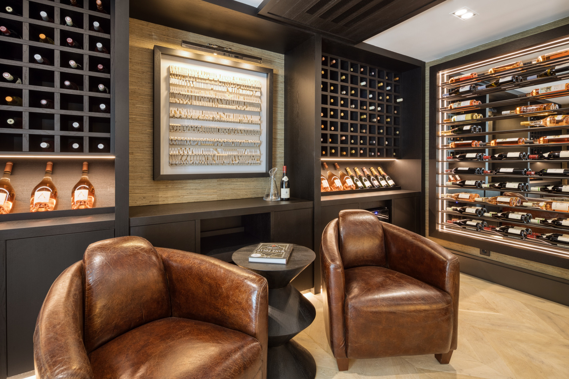 Inside, the interiors are equally impressive. Elegant Crema Sara flooring and a calming neutral palette create a refined and tranquil setting. The triangular roofline is echoed in the living area, providing soaring ceilings and a sense of openness. The dining area is designed for stylish entertaining and flows seamlessly into a bespoke kitchen. Outfitted with top-of-the-line appliances, abundant storage, and expansive counter space, this kitchen masterfully balances form and function.