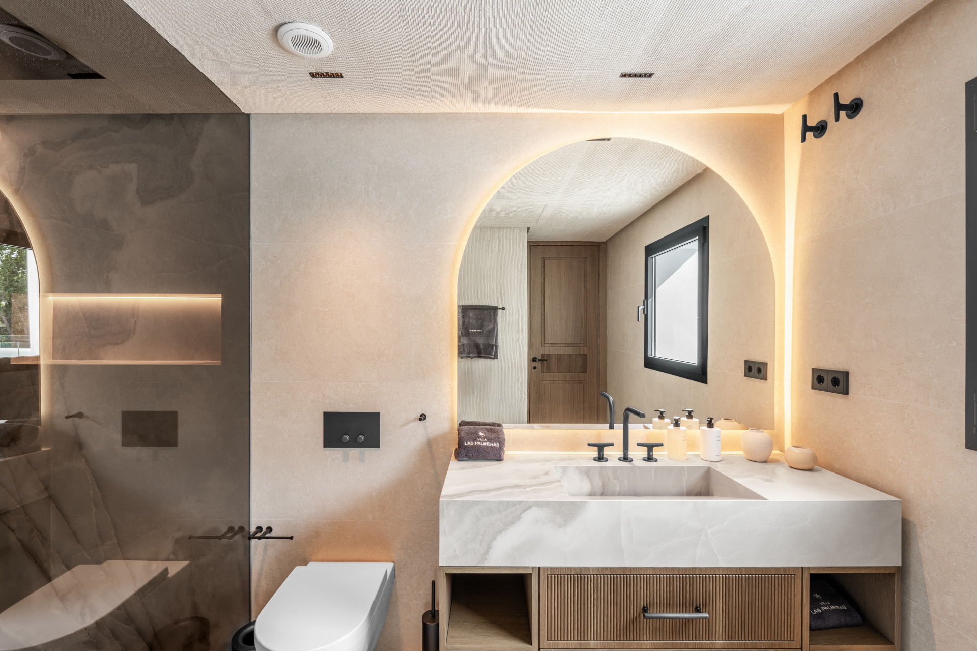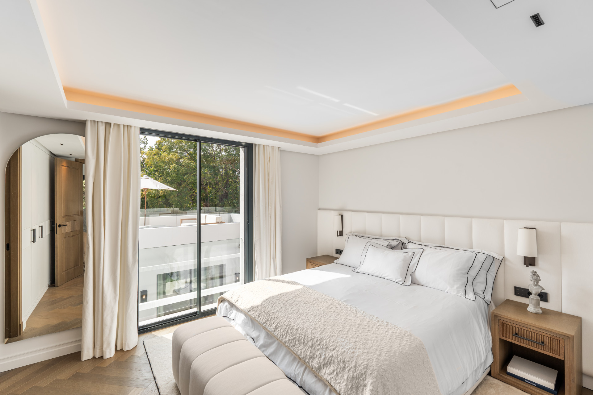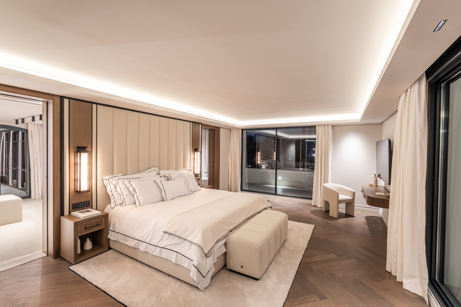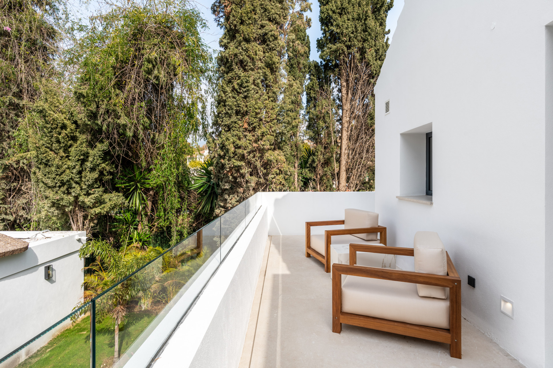 Nestled in the prestigious enclave of Las Brisas, Nueva Andalucía, this exceptional residence combines contemporary architecture with timeless elegance in Marbella’s renowned Golf Valley. Set on a private plot across three levels, the home is centered around a luminous patio that floods the interior with natural light while creating a seamless connection between its wings. The main floor features open-plan living areas with sophisticated finishes, a high-end kitchen, and dining and lounge spaces that open onto terraces overlooking manicured gardens and a sunlit, private pool. The upper level hosts a luxurious primary suite with terrace access, a walk-in wardrobe, and an outdoor shower, while additional bedroom suites are carefully positioned to ensure privacy and comfort. The expansive lower level of over 250m² includes a spa with sauna and steam room, a fully equipped gym, a private cinema, and direct garden access, complemented by a multi-car garage with a turntable for effortless parking. Three separate TV lounges offer versatility for quiet retreats or social gatherings, with every space designed for both functionality and proportion. Surrounded by world-class golf courses and just minutes from upscale dining, international schools, and Puerto Banús, this home exemplifies refined living, discreet luxury, and the perfect balance of everyday comfort and sophisticated entertaining.