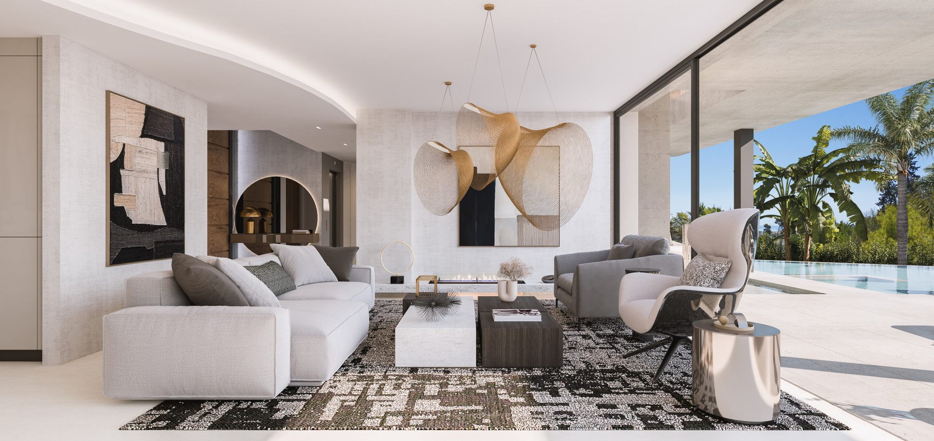 Spread over more than 1,200 m² and three floors—united by a private elevator and grand central staircase, this residence welcomes you on the main level with a light-filled foyer leading into a spacious living and dining zone warmed by a contemporary bioethanol fireplace, complemented by a chef’s kitchen boasting a central island, ample workstations and a hidden laundry area, plus a guest suite with private terrace and pool access. The second floor unfolds into a tranquil master retreat and two additional bedrooms, each featuring en-suite facilities, bespoke walk-in wardrobes and sunlit terraces. At the very top, a rooftop solarium awaits, complete with shaded pergolas, a built-in barbecue and pre-wired connections for a jacuzzi. Below, the lower ground offers a private garage, state-of-the-art gym, atmospheric wine cellar, inviting lounge and further guest quarters. Part of the Noura collection of three private villas on Marbella's Golden Mile.