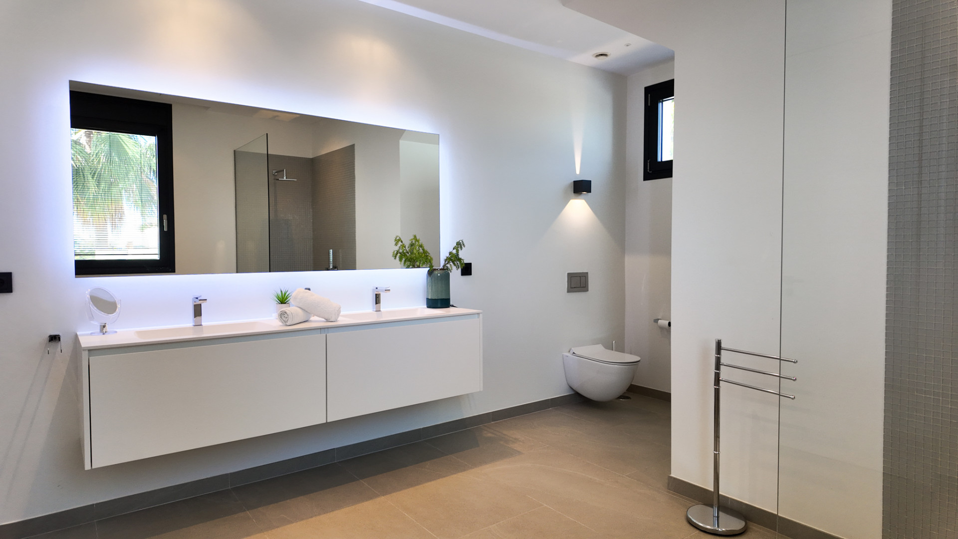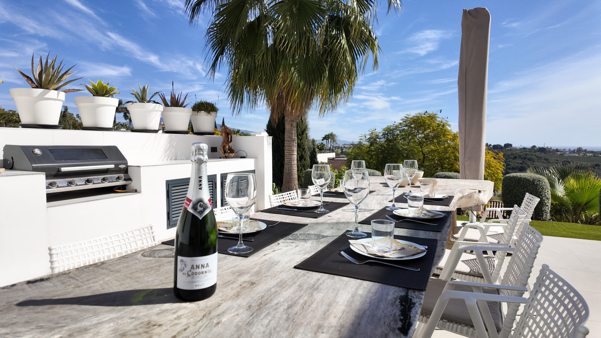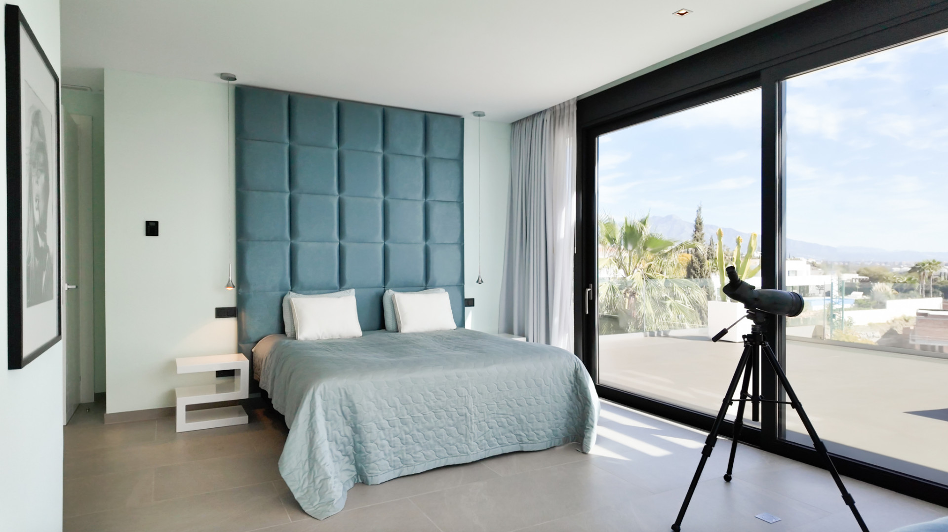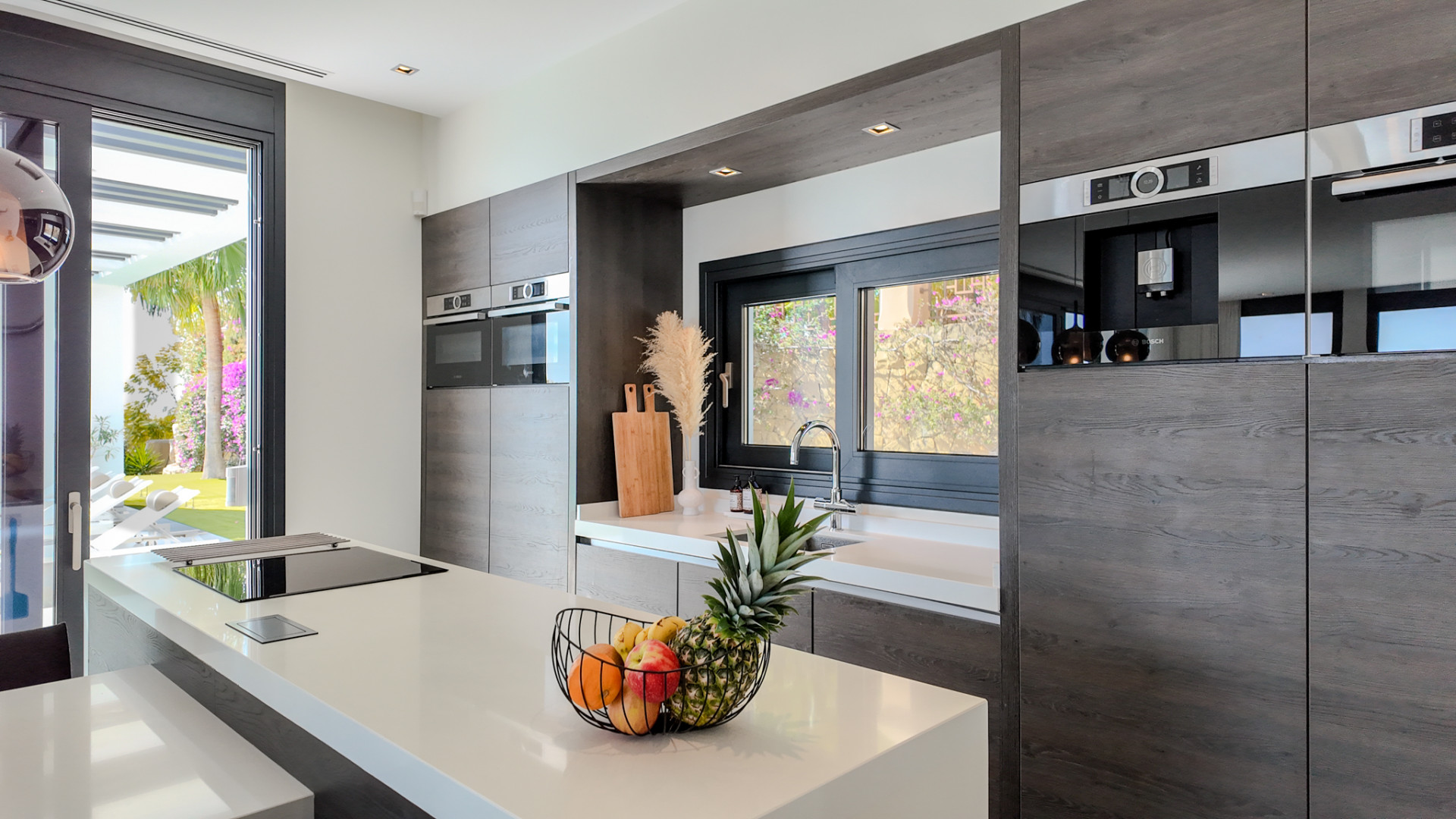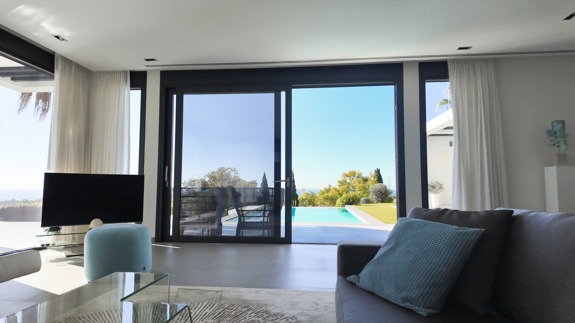 Fantastic south facing, four bedroom contemporary villa in the heart of the exclusive golf resort Los Flamingos; one of the most prestigious and highly desirable developments on the Costa del Sol. The location gives you easy access to all kinds of amenities that are just a stone’s throw away. It is close to the sea and beaches, and just a short drive to shopping areas, restaurants, international schools, sports facilities and all attractions of Puerto Banus and Marbella. Aside from three 18-hole golf courses Los Flamingos is also home to the Anantara Villa Padierna Palace Hotel. The property is located on a private, elevated plot, at the end of a cul-de-sac road and in one of the nicest streets in Los Flamingos. Entering the villa, you will be blown away with the outstanding panoramic sea views. The open-plan design allows a seamless flow between the living, dining, and kitchen areas, creating a sense of spaciousness and freedom, as it extends to a beautiful outdoor living area, undoubtedly one of the key features of this modern home. The villa offers a lifestyle of comfort, sophistication, and relaxation for those seeking the epitome of modern living.