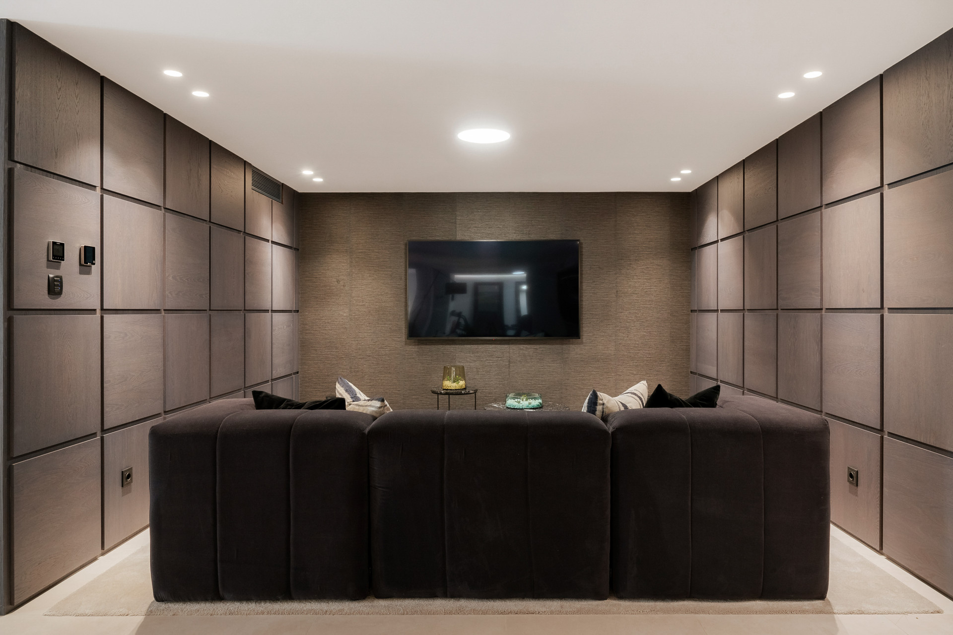 Beautiful villa receives sunlight throughout the day and offers panoramic views of the sea and the golf course. A green perimeter surrounds the property, ensuring privacy. Spread over three levels, the main floor includes an open-plan kitchen with an island and Siemens appliances, a dining area, and an L-shaped living room with built-in shelves and a TV. Two en-suite bedrooms and a guest toilet are also on this level. Large black-framed windows open wide to blend indoor and outdoor spaces. White-painted wooden ceilings bring a touch of warmth, and iron balustrades define the architectural lines. The living room opens to a covered terrace and swimming pool. Further into the garden, there is a shaded outdoor kitchen and dining area. An elegant staircase leads to the first floor, dedicated entirely to the master suite. It features a walk-in wardrobe, bathroom with double sinks, freestanding bathtub, and shower. The suite opens onto a private terrace, partially shaded, overlooking the garden. On the lower level, there is a games area with a pool table, wine cellar, bar, cinema room, and gym. This floor also includes two en-suite bedrooms, a guest toilet, laundry room, storage space, and a covered garage. A paved courtyard offers additional parking on the property.