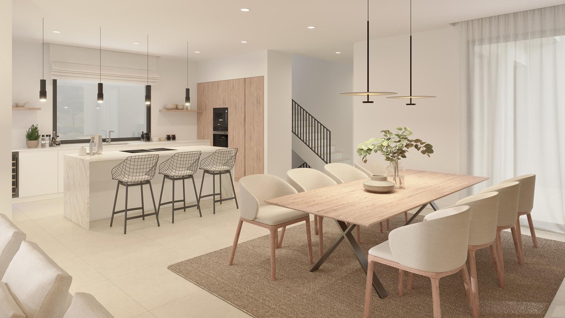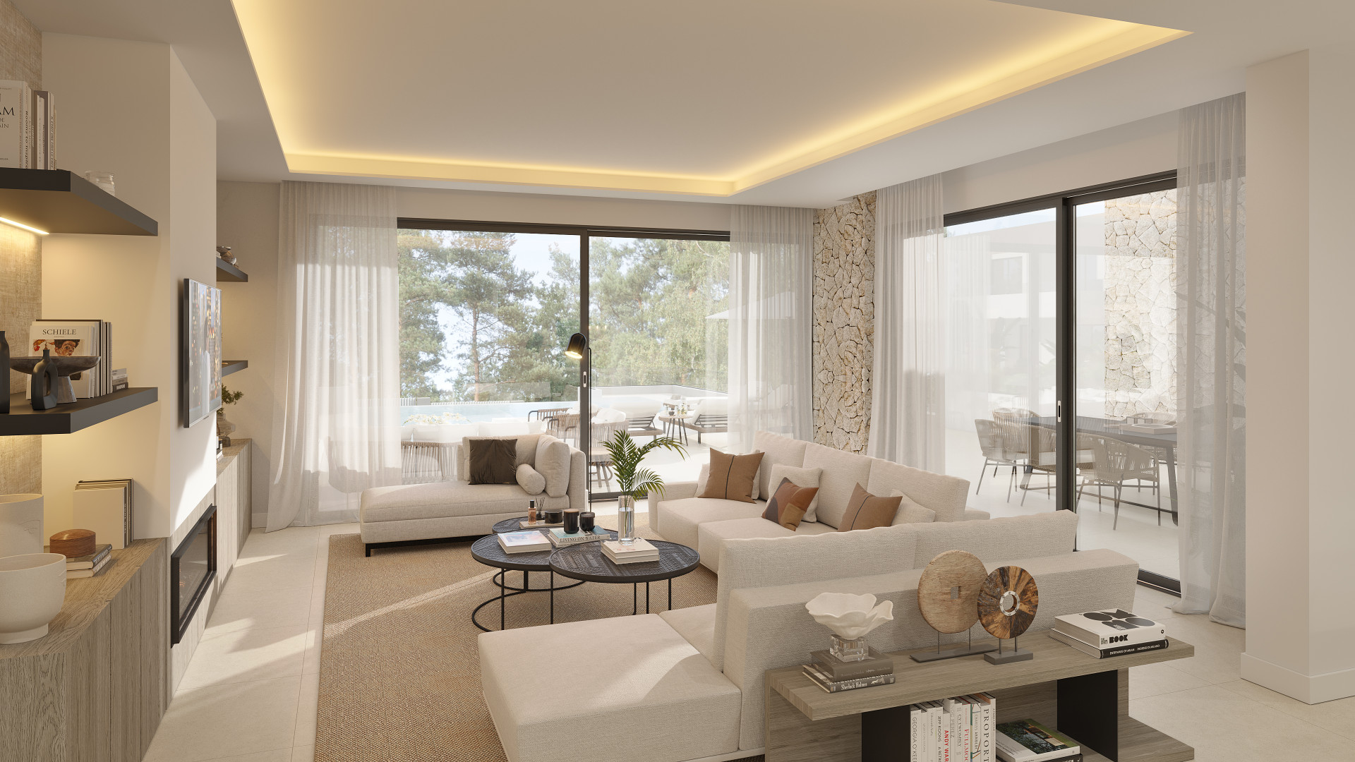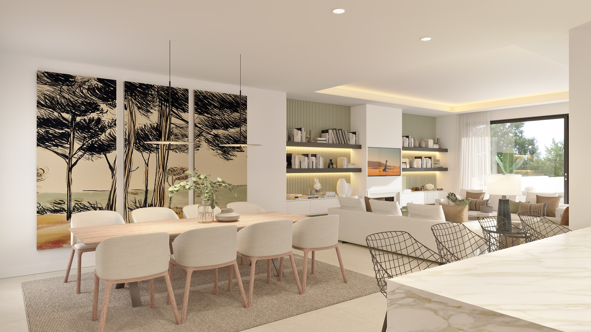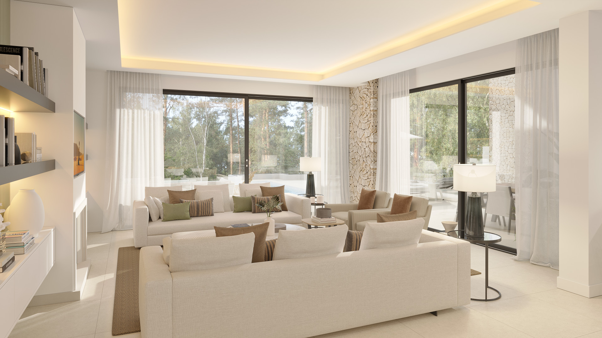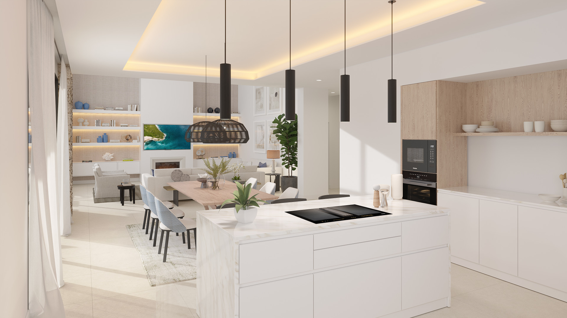 As you enter the villa, you will be greeted by spacious living areas with floor-to-ceiling windows, allowing natural light to flood the space and offering breathtaking views of the surrounding landscape. The open-plan layout creates a seamless flow between the living, dining, and kitchen areas, perfect for both entertaining and everyday living.