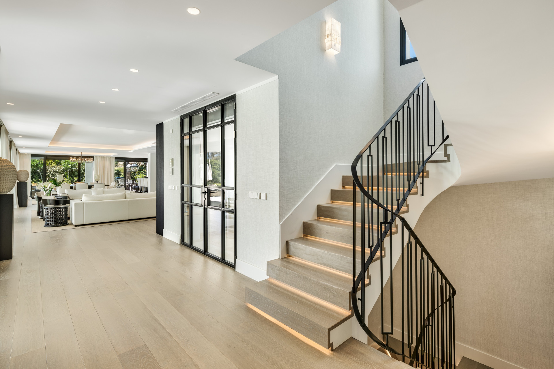 Recently refurbished to the highest standards, the property boasts sophisticated finishes throughout and enjoys spectacular open vistas. Floor-to-ceiling windows and sliding glass doors bathe the interior in natural light, complementing the meticulously designed décor. The villa features five beautifully appointed en-suite bedrooms, each offering a tranquil and opulent retreat. Exceptional amenities elevate the home, including an entertainment level complete with a stylish bar and a state-of-the-art home gym.