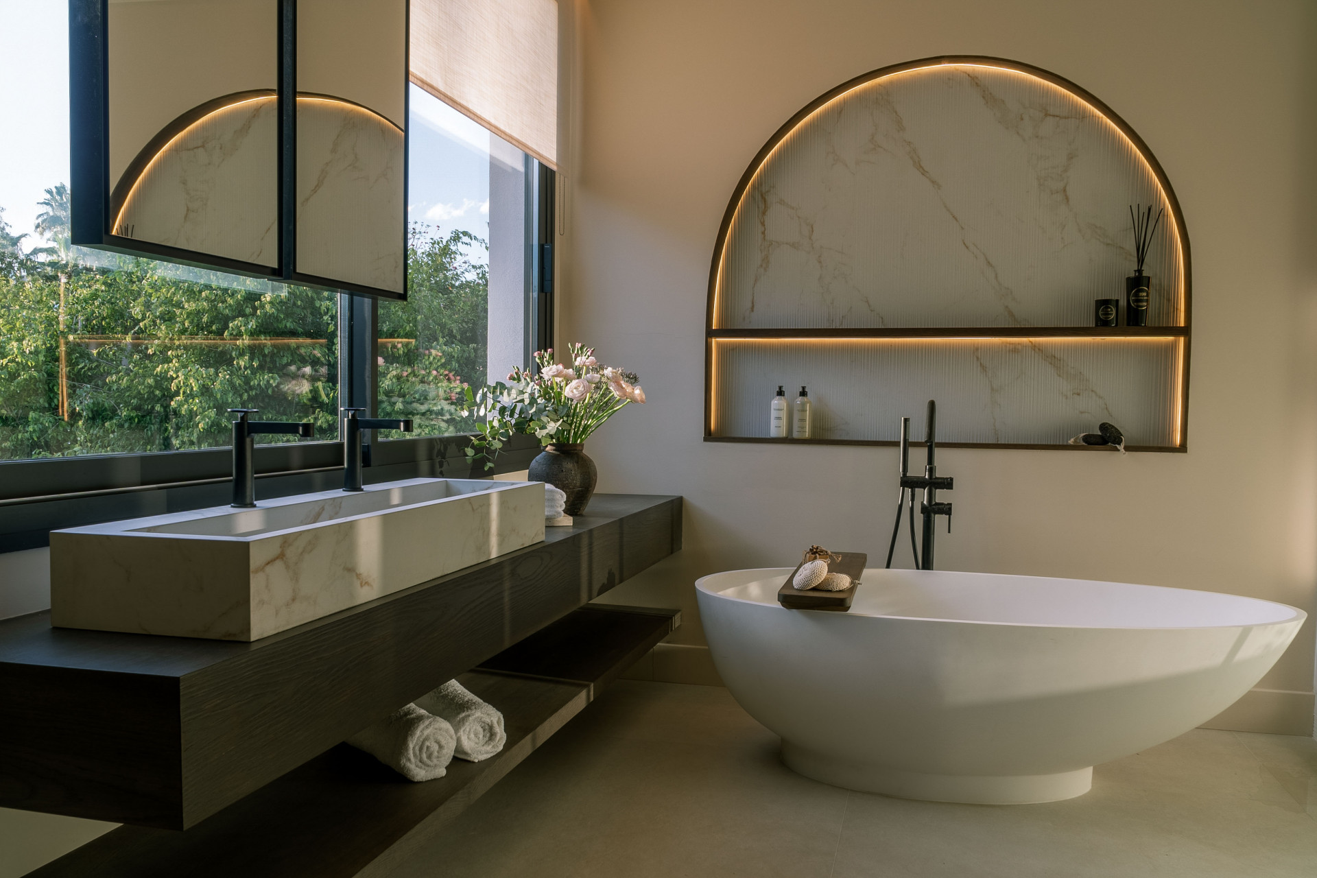 Nestled in the heart of Nueva Andalucía, this beautifully updated Scandinavian-Japandi villa offers the perfect blend of modern comfort and serene luxury. Surrounded by lush, jungle-like gardens for complete privacy, the home features five spacious bedrooms and six sleek bathrooms, each finished in natural materials and a calming neutral palette. The open-plan living area flows effortlessly onto a sun-drenched terrace with barbecue space, while an adjacent outdoor gym and sprawling pool invite both relaxation and activity. As evening falls, settle into the bubbling jacuzzi under the stars or adjust your lighting, climate, and security at the touch of a button with fully integrated smart-home controls. Thoughtfully designed for seamless indoor-outdoor living, this villa is an ideal retreat for both tranquil family life and stylish entertaining.